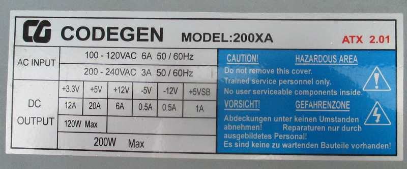 ATX 2.01, 200 W, ostali podaci vidljivi na slikama.