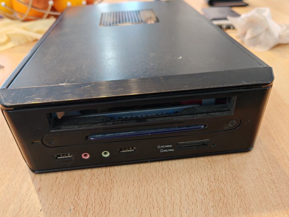Prodajem PC kućište namijenjeno ITX matičnim pločama, crne boje, kompaktnih dimenzija. Kućište dolazi s napajanjem u kompletu. Na prednjoj strani nalaze se USB priključci, audio ulazi/izlazi te čitač kartica (SD, MS/Pro). Kućište ima ventilacijske otvore s gornje i bočne strane za dobro hlađenje komponenti.