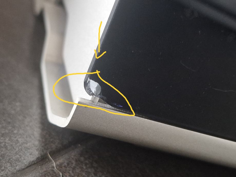 Ima 1 oštećenje uzrokovano mojom greškom, rub kaljenog stakla se malo otkrhnuo slika priložena.