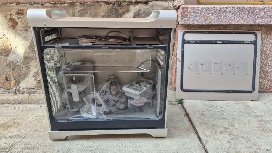 Prodajem kućište Powermac G5 za ATX case mod. Računalo je u djelovima, imam ugl. sve djelove što se matične ploče tiče. Započet je projekat. Unutrašnji djelovi su plastificirani u tamnu sivu boju.