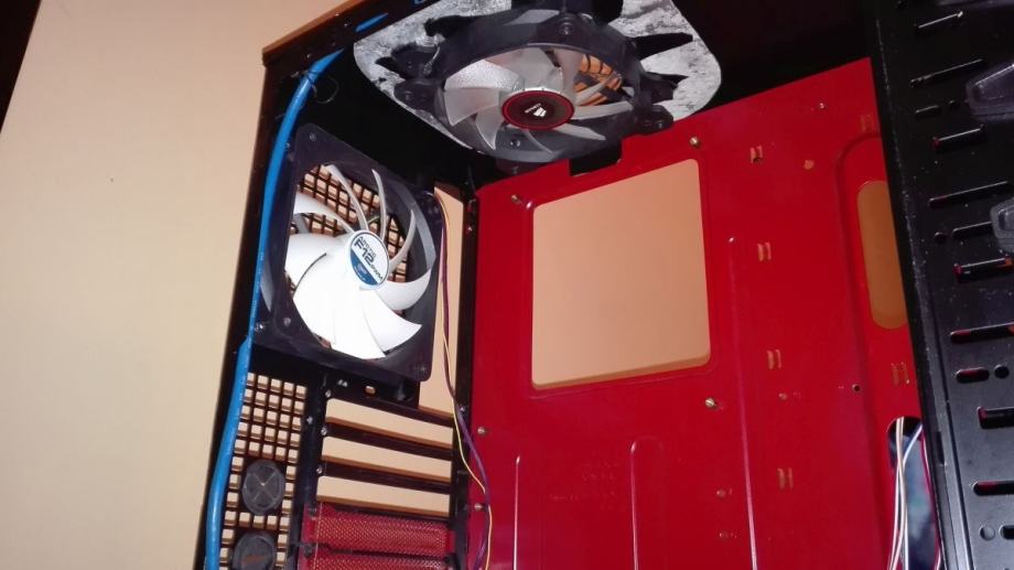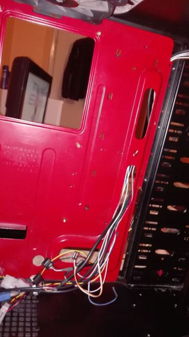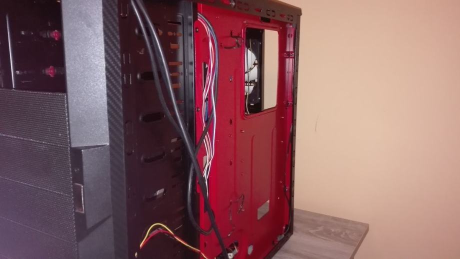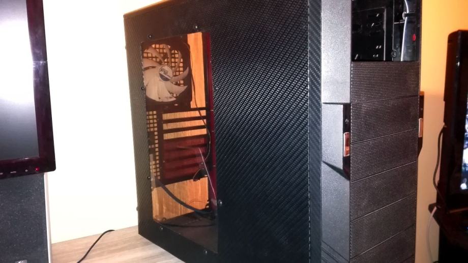 Kučište nije novo ni savršeno i tko to traži nek traži dalje, više je diy tj. moj mali projekt bio. Lako se skine folija s kučišta i prefarba se ali ako se budući vlasnik za to odluči bude mu malo teže jer gornja ploha gdje sam rezao za dodatni ventilator nije savršeno izrezana pa su neke preinake napravljene da bude okruglo ali da se i to srediti tko ima volje i znanja.