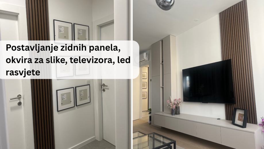 - Montaža televizora,slika,polica,ogledala, zvučnika i drugog visećeg namještaja