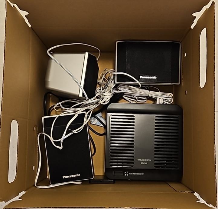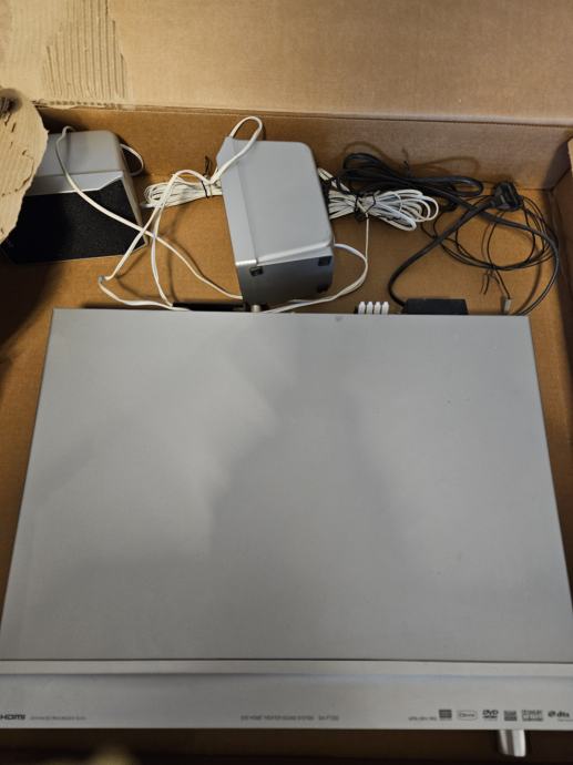 U paketu dolazi sve što je u kompletu: subwoofer, 5 zvučnika, prijamnik za stražnja 2 zvučnika, centralna jedinica, daljinski upravljač, antena za radio, odašiljač za stražnje zvučnike ...