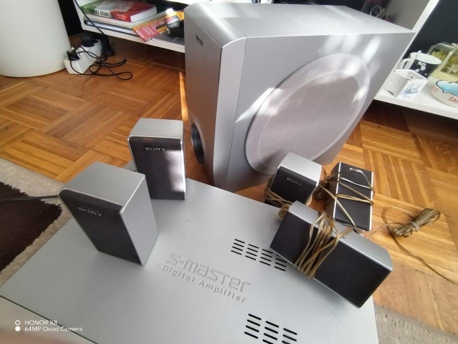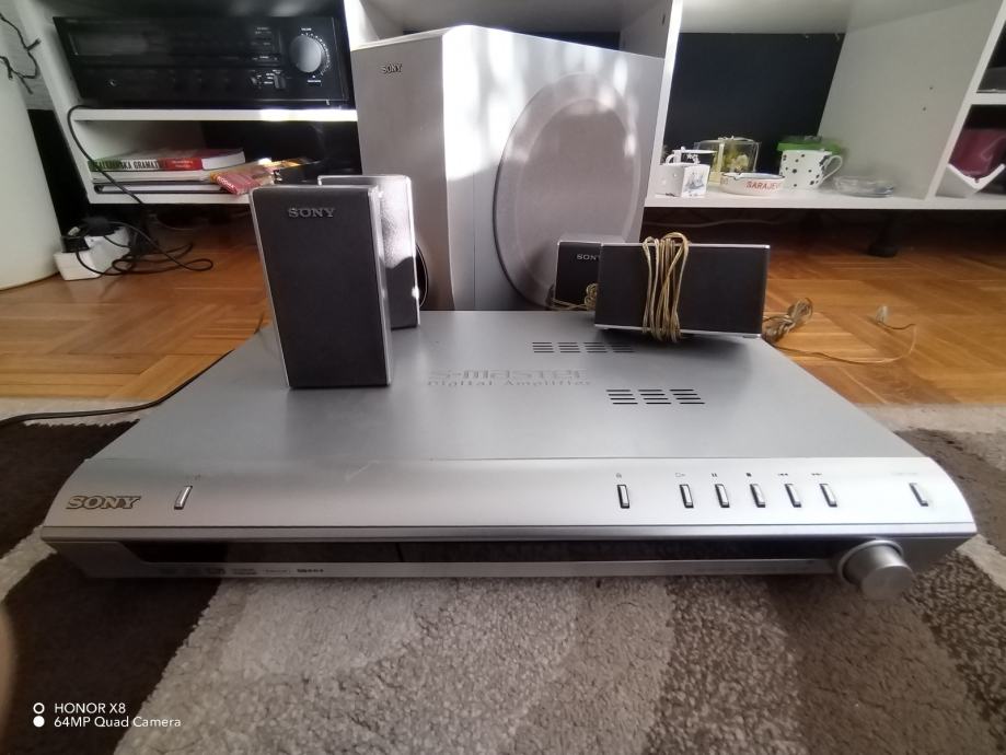 Prodajem kućno kino u kompletu. Vidljivo na slikama, potpuno ispravno i neoštećeno. Sa svim pripadajućim. Originalni kablovi daljinac znaći doslovno sve.