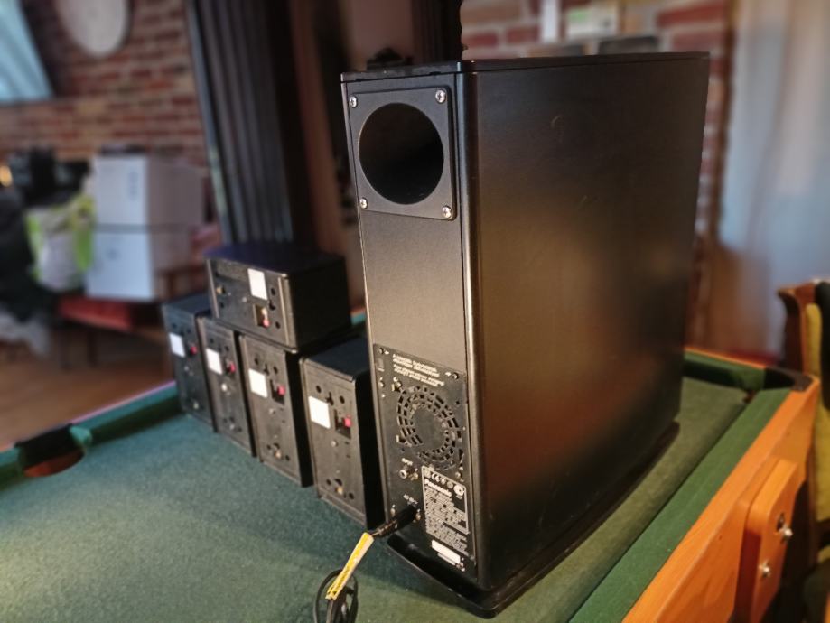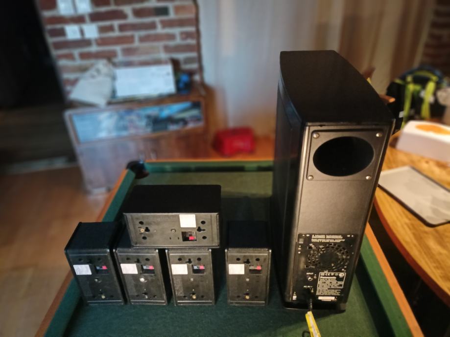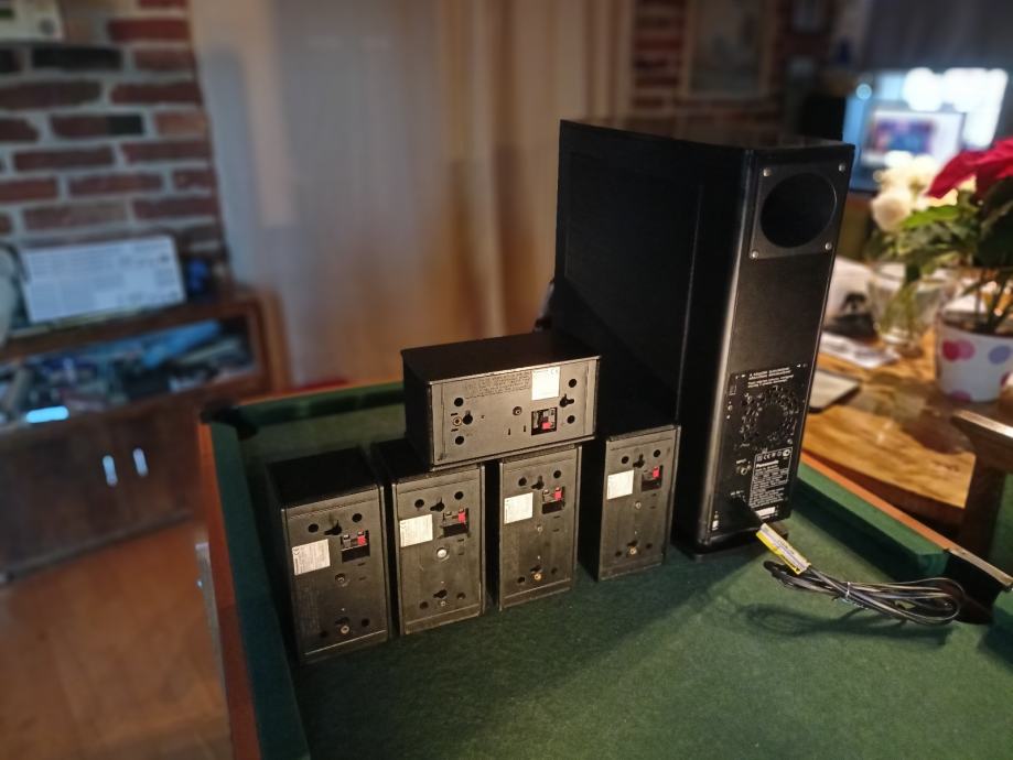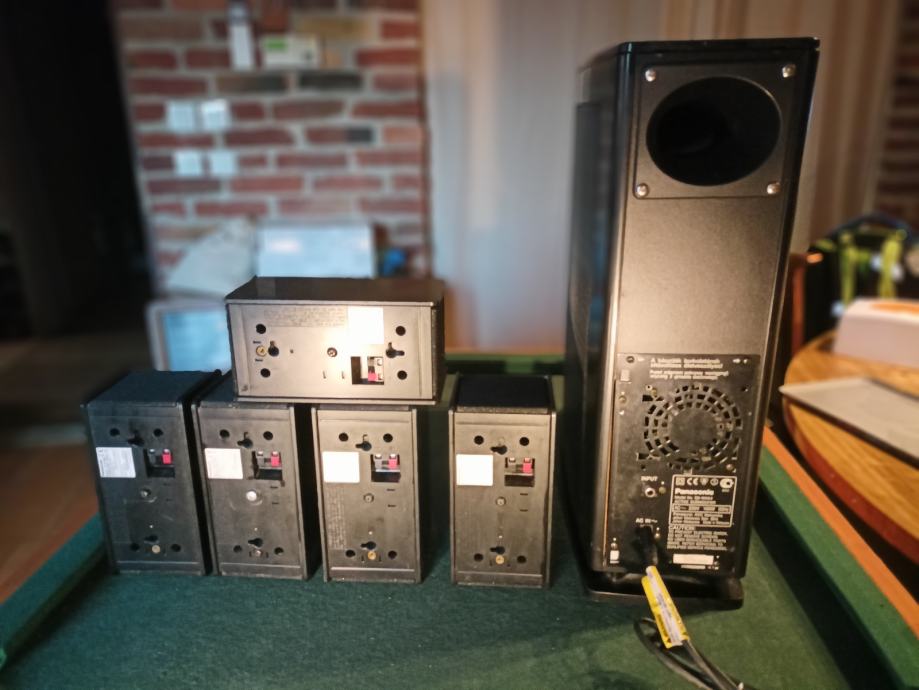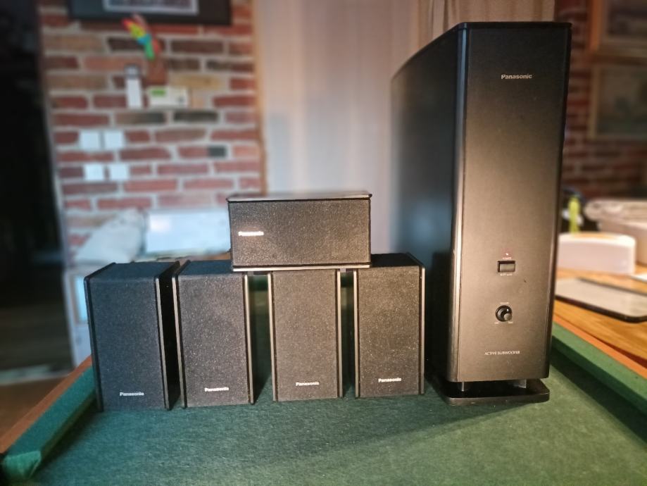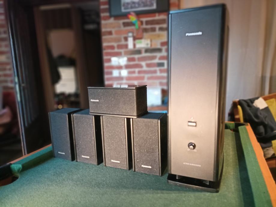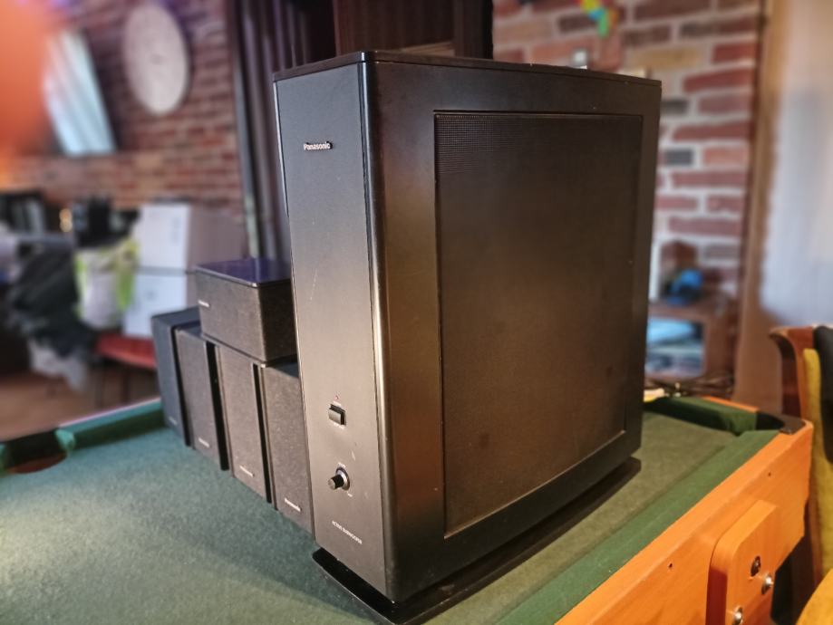 Potpuno ispravan 5.1 surround sistem sa aktivnim subwooferom i 5 satelita. Znam da Panasonic nije specijaliziran za hi-fi ali ovaj set svira sjajno. Dimenzije subwoofera 46*16*42 cm i satelita 18*11*13 cm. Moguće zamjene za razno. Šaljem poštom. Pogledajte i moje ostale oglase.