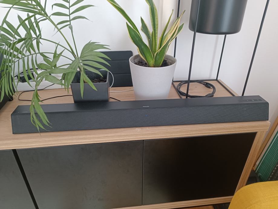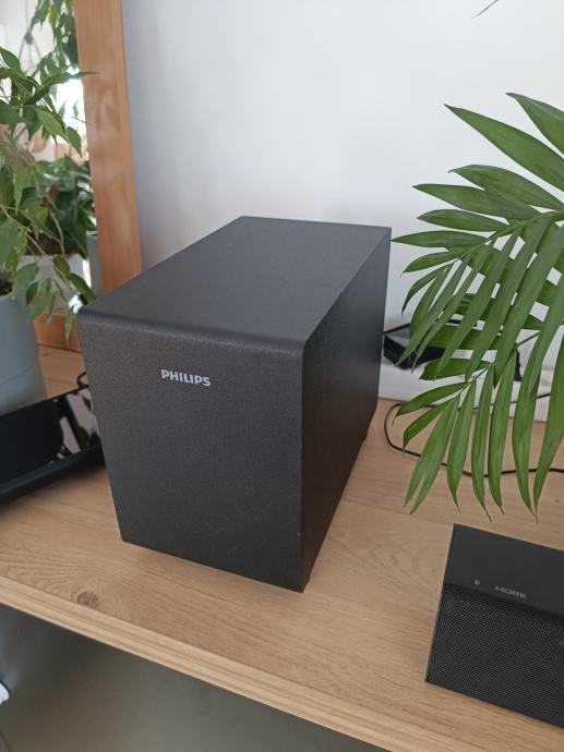 Prodajem Philips soundbar TAB5305/12 u setu s bežičnim subwooferom. Radi se o sustavu koji donosi kvalitetan zvuk za kućno kino postavljanje. Soundbar je kompaktnog, tankog dizajna u tamno crnoj boji, a subwoofer se bežično spaja i pobrine se za duboke basove. Set je rabljen.
