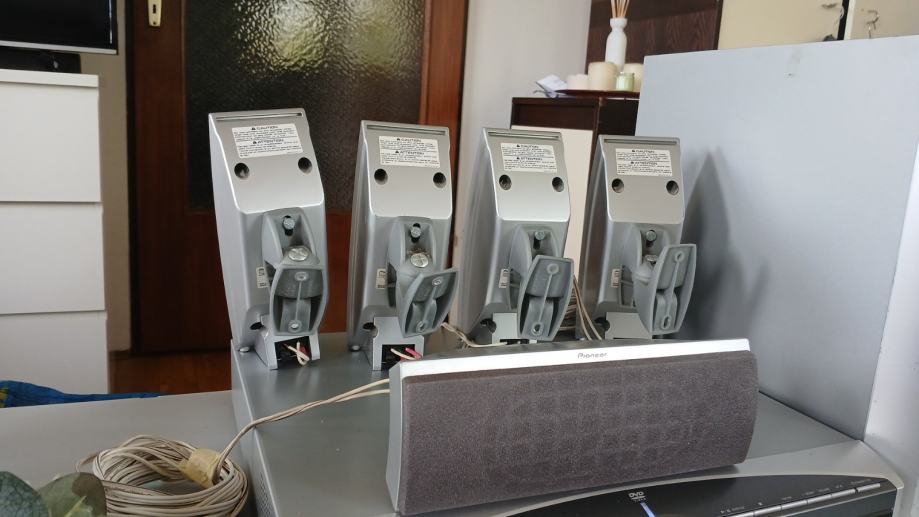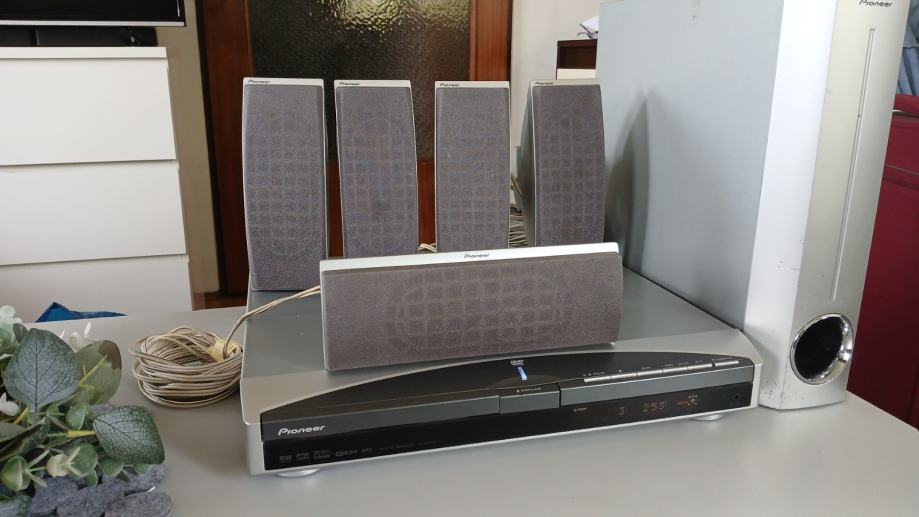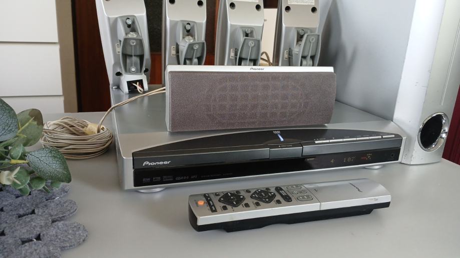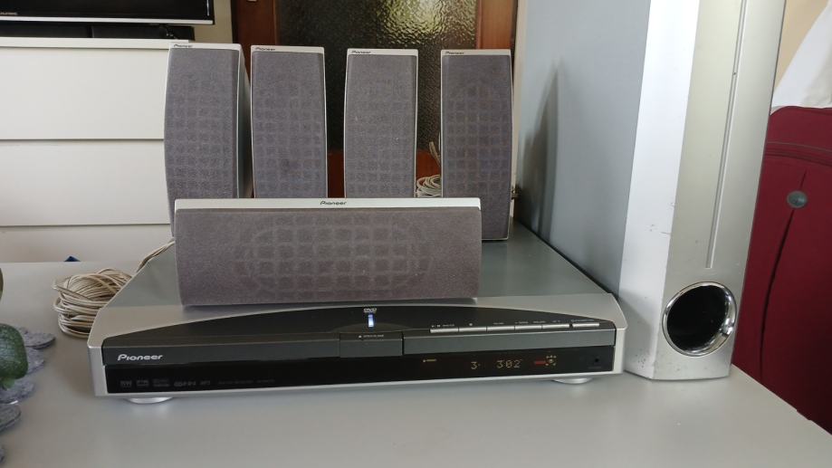 Pioneer kucno kino xv dv 315 prodajem za 60 eura. Ima radio, dvd, cd mp3, aux ulaz. Dolazi sa daljinskim, 5 satelita i subwooferom. Sateliti imaju zidni nosač i mogu se smjestiti na policu ili zid. Kucno kino je ispravno. Kablovi su prilično dugi pa nije problem zvucnike smjestiti i u veću sobu. 097 759 5554