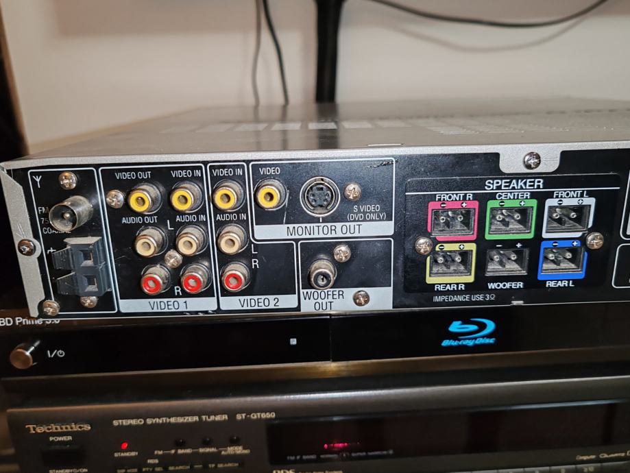 Integrirani stereo FM tuner, uredno reproducira CD i DVD medije, prikazano na fotografijama. Svih 6 Zvučnički izlaza uredno rade.