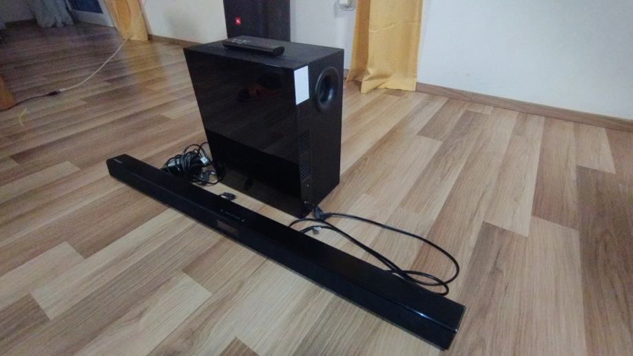 kupljeno u 2016. godini. Soundbar, subwoofer, daljinski upravljač, adapter.