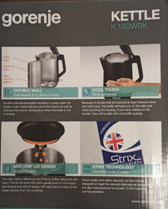 Zbog dvostruke stijenke i posebnog zračnog sloja između unutarnjeg i vanjskog sloja, ovo kuhalo za vodu će vas zaštititi pri dodirivanju kućišta.