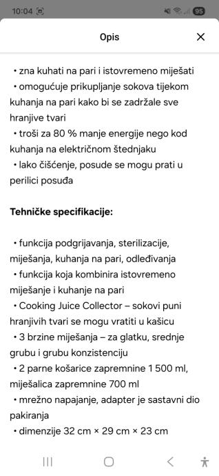 Opis se nalazi ucitan pod slikama. Uređaj je koristen pola godine. Radi sve normalno. Potrebno ga je oprati/ocistiti prije koristenja. Plaćen 169eur. Prodajem za 60eur. Potrebno doći osobno po njega. Molim poruku sms/viber/whatsapp na broj 099 730 7237 - javit cu se povratno cim istu vidim. Ne šaljemo hp-om, dpd i slično. Ne koristimo payprotect niti uplate na račun. Previše je pokušaja prevara. Hvala unaprijed na razumijevanju
