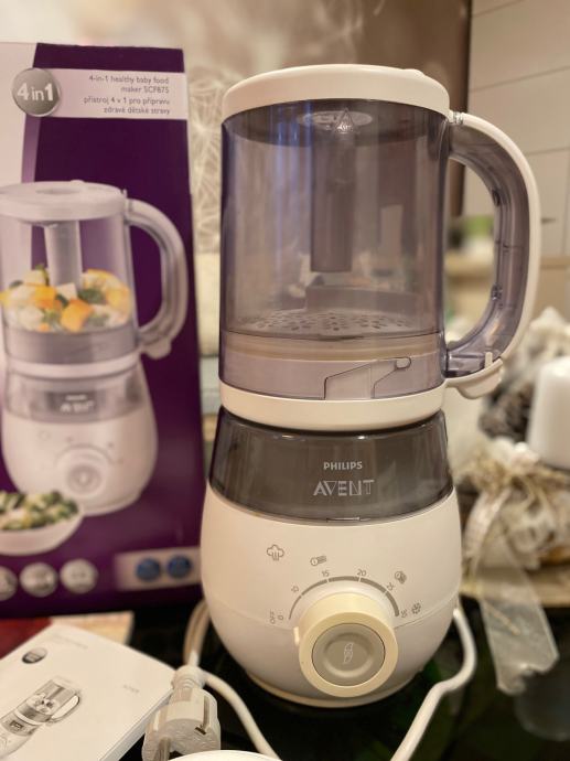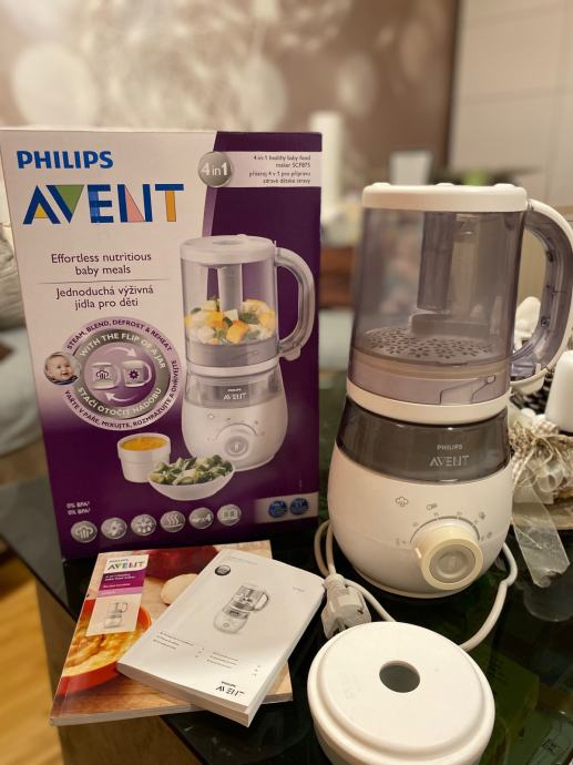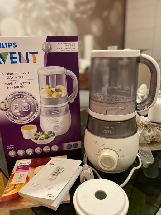 Aparat za kuhanje na pari, miksanje, odleđivanje i podgrijavanje idealan je za pripremu zdravih, ukusnih i hranjivih obroka za bebe i djecu. Jednostavan je za uporabu i čišćenje te praktičan za svakodnevnu pripremu obroka - u njemu se i kuha i, nakon kuhanja, po želji, miksa obrok. Uz aparat dolazi i posudica za spremanje pripremljene hrane, knjižica s receptima te uputstvo za uporabu. Aparat ne zauzima puno mjesta, a njegovi su dijelovi perivi u perilici posuđa. U potpunosti je očuvan i spreman za upotrebu :)