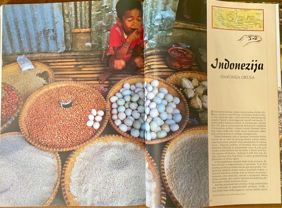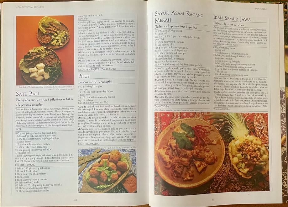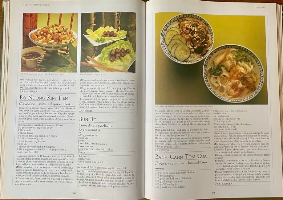 Izvorni recepti iz Japana, Koreje, Kine, Filipina, Tajlanda, Laosa i Kambodže, Vijetnama, Singapura i Malezije, Indije, Burme, Indonezije i Šri Lanke. Bogato opremljeno fotografijama u boji u tekstu i u punom formatu knjige.