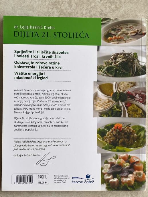 Prodajem knjigu “Dijeta 21. stoljeća”, autorica dr. Lejla Kažinić Kreho, članice Britanskog nutricionističkog društva. Knjiga donosi revolucionarni program za brzo i učinkovito mršavljenje uz održavanje alkalnog pH tijela. Uz pomoć preporuka i recepata iz ove knjige moguće je spriječiti i izliječiti dijabetes te bolesti srca i krvnih žila, održavati zdrave razine kolesterola i šećera u krvi te vratiti energiju i mladenački izgled.