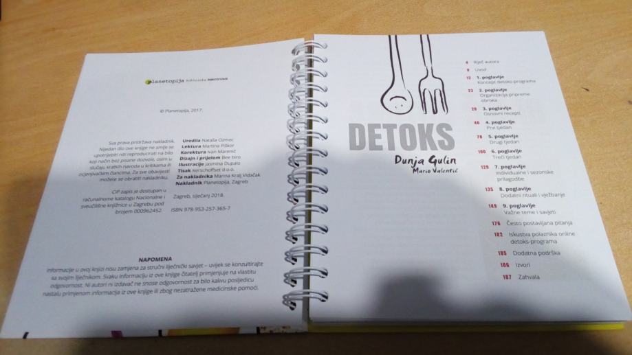Ova je knjiga osmišljena kao cjeloviti priručnik za samostalno provođenje učinkovite detoksikacije na prirodan način. Probrani, provjereni recepti i sustavni jelovnici, liste nabavke po tjednima, savjeti za organizaciju pripreme obroka, kao i dodatni rituali – od čajeva, do njege kože, disanja i vježbanja za čišćenje organizma od toksina. Rezultat: veća doza vitalnosti, pomlađeno tijelo, jači imunitet, rješenje nekih zdravstvenih tegoba. Knjiga je nastala nakon višegodišnjeg provođenja online detoks-programa i zamišljena je kao vodič, dan po dan, koji daje podršku i korisna znanja za provođenje detoksa u bilo koje godišnje doba te prilagođenog sportašima i rekreativcima. Knjiga koja će vam trebati barem jednom godišnje, iako ćete neke načine kuhanja, rituale i vježbe vjerojatno htjeti provoditi cijele godine.