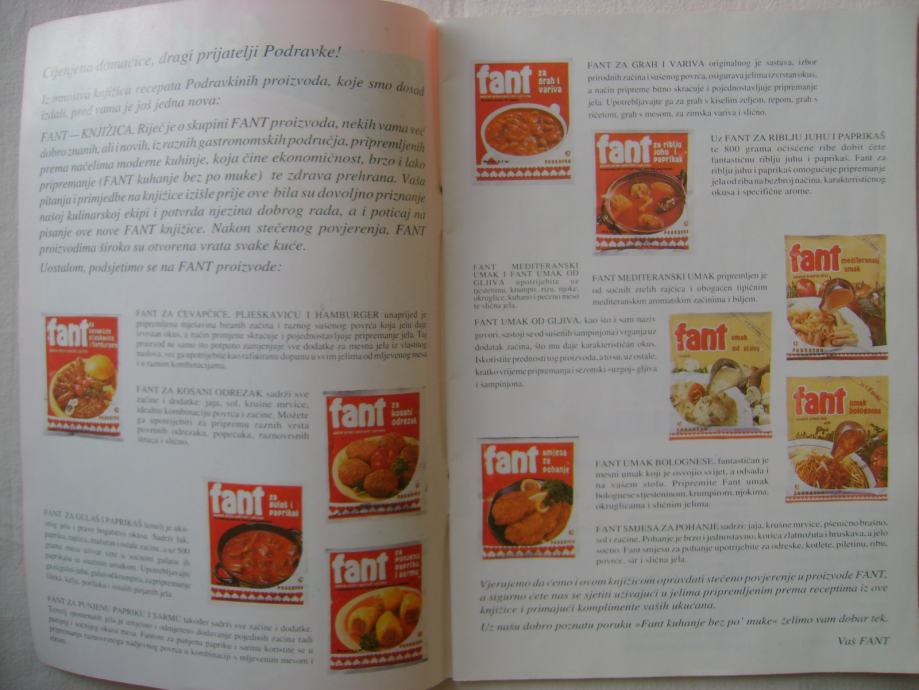 Fant recepti - izdavač Podravka, Koprivnica 1994. godine, 15 x 21 cm, 30 stranica, ilustrirano.