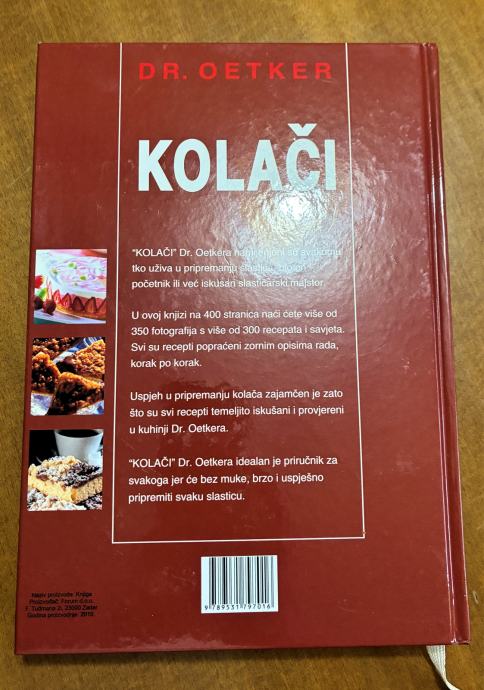 “Kolači” Dr. Oetkera dobrodošao je priručnik u svakom kućanstvu jer je kao stvoren i za početnike, koji tek uče pripremati slastice, i za napredne slastičarske umjetnike. Ovo novo izdanje temeljito smo preradili, pa čete sad uz klasične recepte naći i mnogo novih, dopunjenih novim fotografijama.Osim omiljenih i poznatih recepata, kao što su savijača od jabuka, mramorni kolač, svarcvaldska torta s kiršom ili berlinske pokladnice, naći ćete i nove recepte za slastice kao što su pecivo s maslacem, torta krtičnjak, kolač od jabučnog vina ili drugačija makovnjača.Strip recepti sličicama prikazuju pripremu nekih slastica korak po korak. Svi su recepti opširni, što i početnicima jamči da će im priprema slastica uspjeti. Stručnjaci Dr. Oetkera sve su recepte temeljito provjerili u svojim kuhinjama. Kad odlučite prvi put pripremiti slasticu prema našem receptu, želimo vam uspjeh i dobar tek, jer ćete sigurno uživati u kolačima, tortama, čajnom pecivu, pločicama te u kruhu i pecivu.
