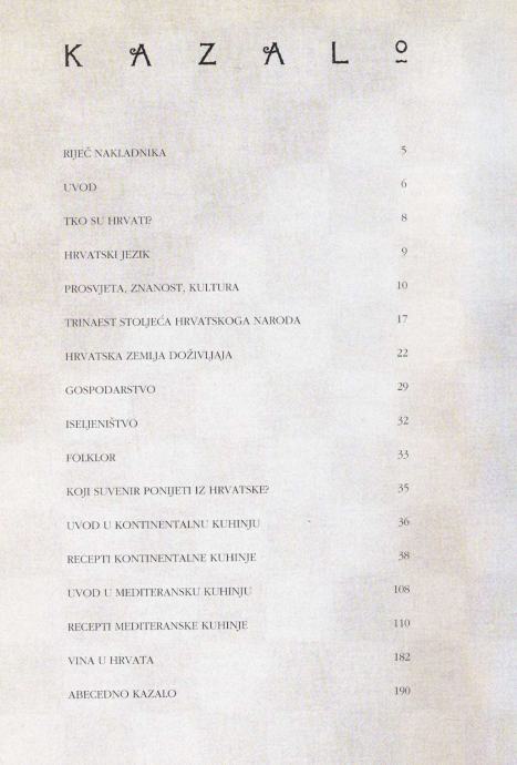 Knjiga, iako predstavlja "cvjetnjak" hrvatske tradicije, vještine i kulture priređivanja jela, nije samo niz naputaka kako pripremiti dobro i ukusno jelo, već ona želi predstaviti Hrvatsku u različitim vidovima. Hrvatska za stolom, kako je nazvasmo, nudi bogatu i raznoliku hrvatsku gastronomsku kulturu, ali i sve ono što gastronomiju prati. Dakle, i raznolikost hrvatskih zemalja, njihovu povijest i tisućljetnu kulturnu baštinu kao nezamjenjiv dio hrvatskoga duhovnoga identiteta. Ona progovara i o znamenitim Hrvatima koji su proteklih trinaest stoljeća ugradili sebe i svoje stvaralaštvo u nastojanja da se sačuva i proslavi, unatoč svim protivnostima, nesklonim vremenima i tuđim presizanjima, hrvatsko ime, ime hrvatskoga jezika i naroda, te da se uspostavi, učvrsti i očuva samostalna i demokratska hrvatska država. Hrvatska jela proizašla su iz različitih plodova zemlje Hrvata; i onih kontinentalnih i onih mediteranskih. U toj različitosti ogleda se i raznovrsnost hrvatske kuhinje i bogatstvo njezina stola.