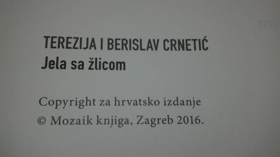 Jela sa žlicom, Terezija i Berislav Crnetić - 2016. godina, u odličnom stanju.