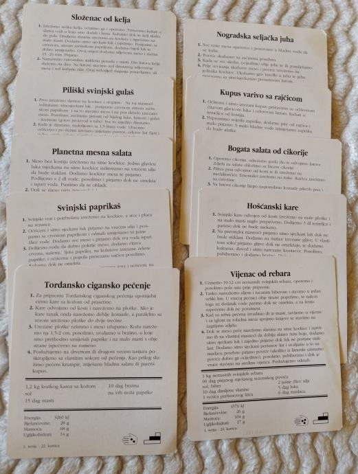 10 kartica sa receptima, potpuno očuvane, kao nove.