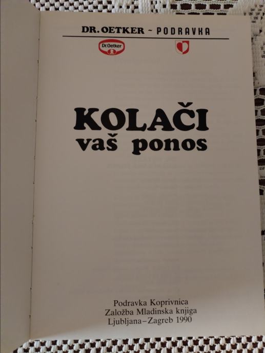 Prodajem knjigu recepata za kolače. Pripremili su je Dr. Oetker i Podravka i ušla je u gotovo milijun domaćinstava u Jugoslaviji. Ovo izdanje sadrži 185 izabranih recepata i preko 150 novih fotografija u boji s opširnim uputama za pripremanje raznih vrsta tijesta za kolače i kruh.