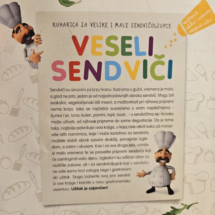 Kuharice s receptima za pripremu i serviranje špageta i sendviča. Vrlo su kreativne gdje kroz igru možete animirati svoje dijete i na vrlo maštovit način potaknuti ga da pojede hranu i usput uživa u oblicima i okusima.