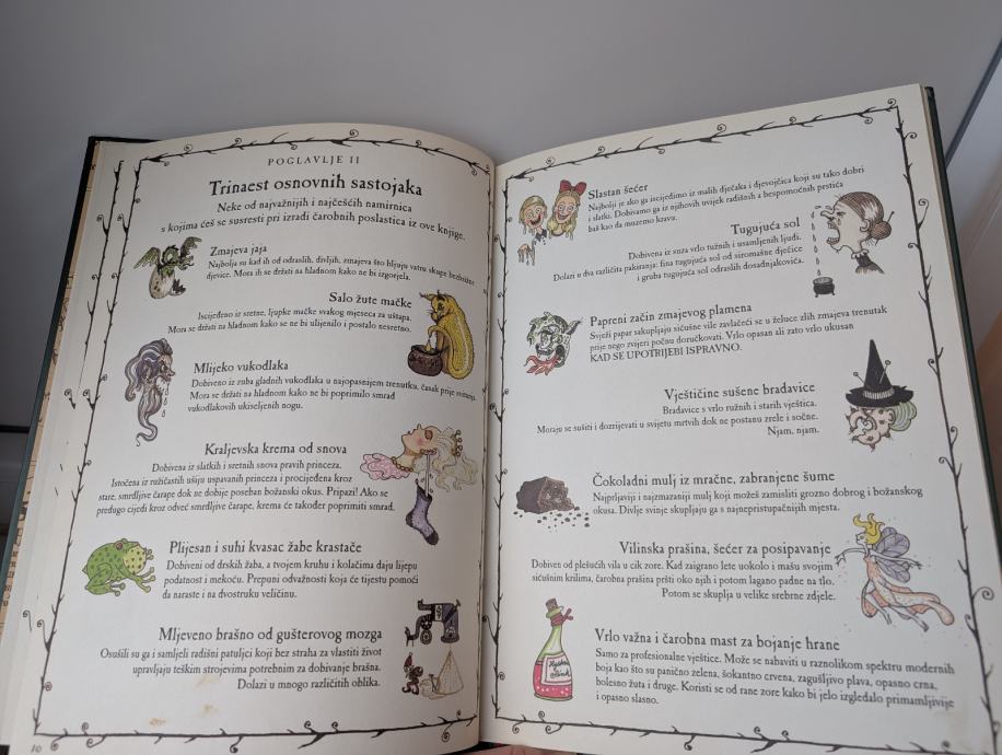 U davna, pradavna vremena vještice, čarobnjaci, trolovi i razna druga čudovišta organizirali bi čajanke i častili se najslasnijim iznenađenjima načinjenim po mračnim tajnim receptima. Ukoliko se želite okušati u spravljanju i degustaciji magičnih jela kao što su: Čarobni štapić, Vještičina metla, Torta od zmajevog repa i brojnih drugih, ponajprije potpišite ugovor o ustoličenju, jer opreza u kuhinji za male šegrte nikad dosta, potom se oboružajte sa sedam čudnih kuhinjskih pomagala i trinaest osnovnih sastojaka. Sve ostalo - jednostavno je. Zazovite čarobnu zabavu, čistu kreativnost i zasigurno ćete uživati. Ilustrirana kuharica sadrži petnaest jednostavnih recepata namijenjenih djeci ali i svima djetinjasto odraslima.