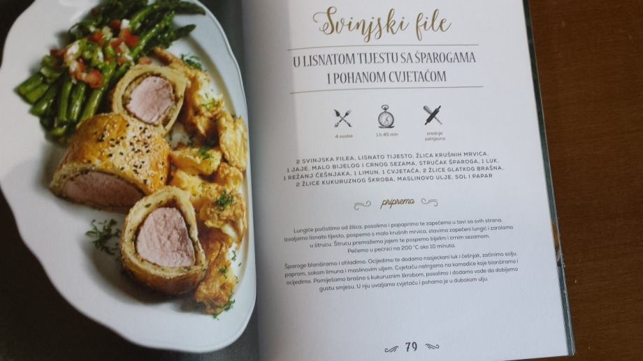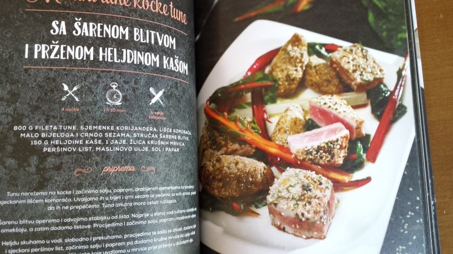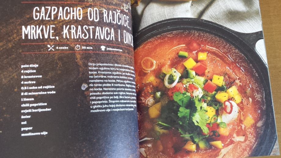 Dimenzije kuharice 20 x 25, tvrde korice, prekrasne fotografije uz svaki recept i još puno drugih važnih savjeta u kuhinji.