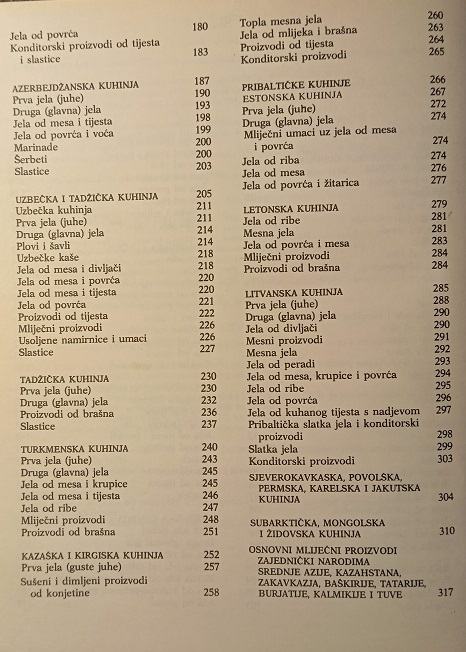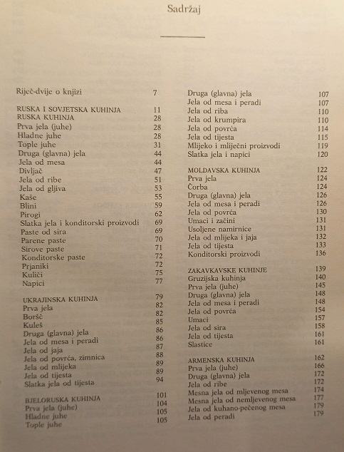 Nekoliko stotina različitih recepata - od predjela do kolača, od Estonije i Litve, preko Bjelorusije i Ukrajine do Armenaca, Moldavaca, Uzbeka i Kazbeka