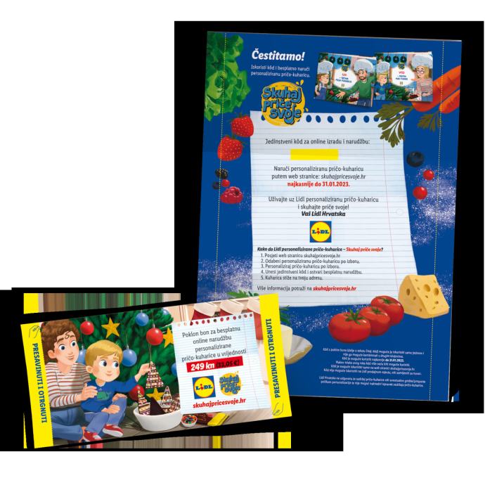 Prodajem 2 poklon bona za besplatnu narudžbu personalizirane kuharice Lidl "Skuhaj priče svoje ".