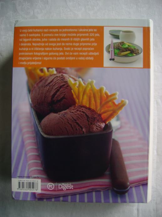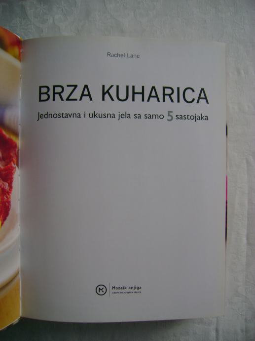 Rachel Lane - Brza kuharica; jednostavna i ukusna jela sa samo 5 sastojaka - izdavač Mozaik knjiga, Zagreb 2009. godine, 17 x 22 cm, polutvri uvez, 704 stranica, prebogato ilustrirano.
