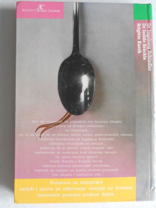 Prodajem "Kuharicu za alergičare" (Schindler/Brackle/Karch), izdanje "AC" 1986. g., tvrdi uvez. Knjiga je dio kućne biblioteke, ali nije nikada korištena. Sadrži i upute za otkrivanje alergije pomoću probne dijete.