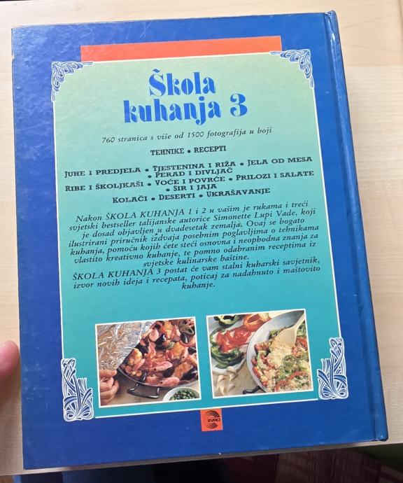 Prodajem kuharicu Škola kuhanja 3 autorice Simonette Lupi Vade. Radi se o trećem dijelu popularne serije koja je bila bestseler u dvadesetak zemalja. Knjiga ima 760 stranica s više od 1500 fotografija u boji.