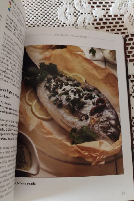 Prodajem novu ŠKOLU KUHANJA za ribe, mekušce, rakove i školjki. Uz ovu knjigu postajete veliki kuhar, korak po korak. Uvez je tvrdi, 127 stranica. Dobar tek!