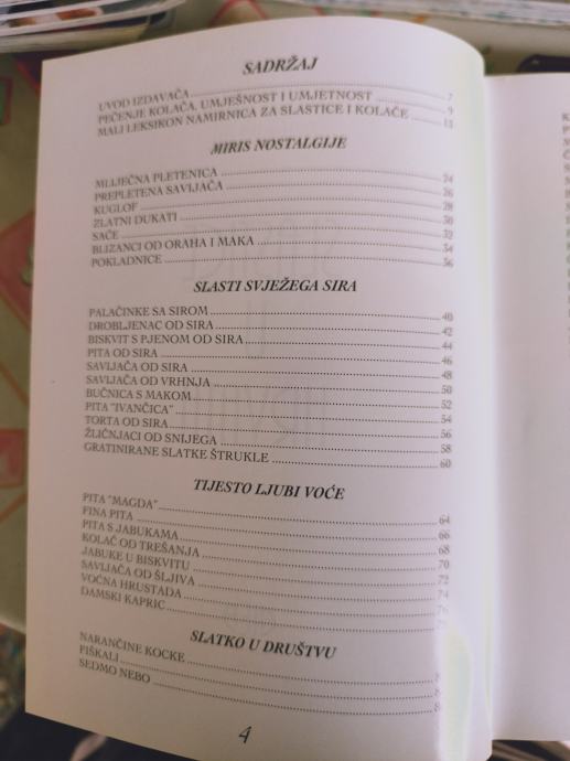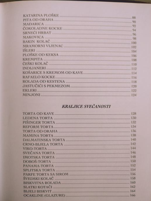 Autorice ove kuharice, Ivanka Biluš, Ivanka Božić, Cirila Rode i Božica Brkan, predstavljaju tradicionalne i moderne recepte za kolače, kekse, torte i kreme, nudeći ono najbolje, što su i same kušale. Tvrdi uvez i kvalitetni papir te sto vrsta kolača, uz fotografije u boji