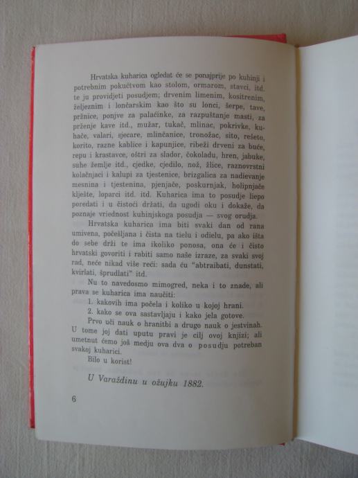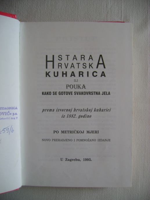 Stara hrvatska kuharica ili Pouka kako se gotove svakovrstna jela; pretisak "prema izvornoj hrvatskoj kuharici iz 1882. godine" - izdavač B-Graf Zaprešić, Zagreb 1995. godine, 14 x 20 cm, tvrdi uvez, 320 stranica, naklada 1000 primjeraka.