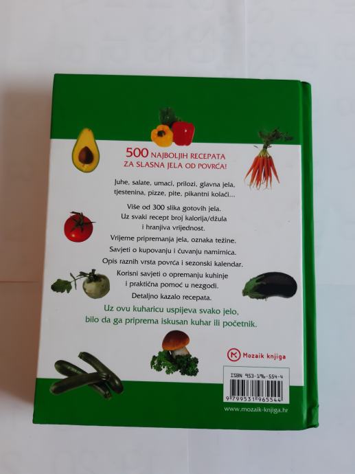 Ova njemačka "povrtna" kuharica potaknut će mnoge čitatelje, a ne samo vegetarijance, da se okušaju u spravljanju mnogih jednostavnih a zamamnih i slasnih jela. Knjiga prikazuje 500 najboljih recepata za jela od povrća (juhe, salate, umaci, prilozi, glavna jela, tjestenine, pizze, pite, pikantni kolači...). Uz svaki recept dana je i hranjiva vrijednost jela, broj kalorija/džula, vrijeme pripremanja, oznaka težine. Možemo pročitati i mnoštvo korisnih savjeta o kupovanju i čuvanju namirnica, o opremanju kuhinje itd. (Ž)