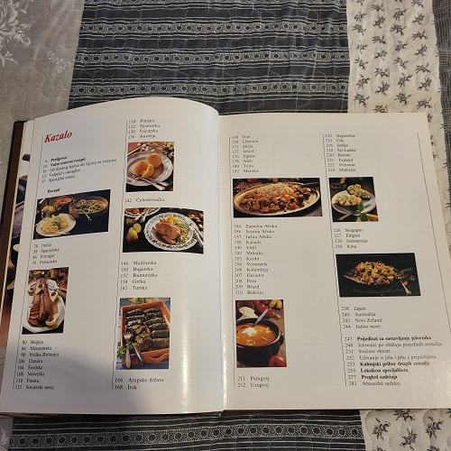 Izbor recepata za ovu knjigu obavljen je u suradnji s velikim brojem stručnjaka iz cijelog svijeta. Izabrana su i ovdje predstavljena najbolja, najkarakteričnija jela kojima brojne zastupljene zemlje otkrivaju pogled u svoje nacionalne kuhinje. Ova knjiga vam donosi i niz svečarski ili nacionalno izabranih jelovnika u kojima se predlažu odgovarajuća pića; sistematizirano kazalo vam omogućuje da kombinirate jela i pića i izaberete recepte koji vam najviše odgovaraju.