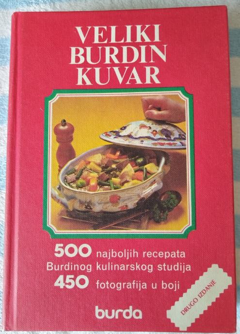 Prodajem knjigu Veliki burdin kuvar, tvrdi uvez, 502 stranice, u izdanju Nolit, Beograd, 1986. godina. Sadrži 500 najboljih recepata Burdinog kulinarskog studija i 450 fotografija u boji. Knjiga je potpuno očuvana, kao nova.