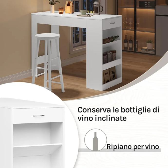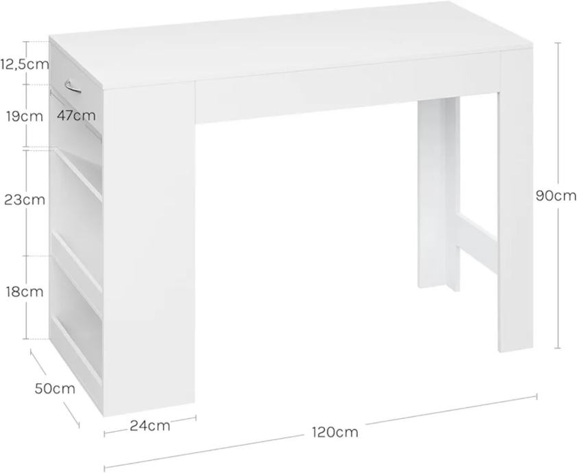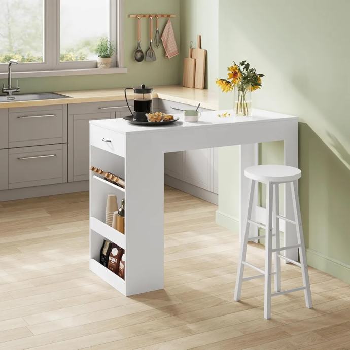 Barski stol, Barski pult s 1 ladicom i 3 police, Stol na poluotoku za kuhinju, pub, bistro, Inženjersko drvo (bijela, 90 cm, 50 cm, 120)
