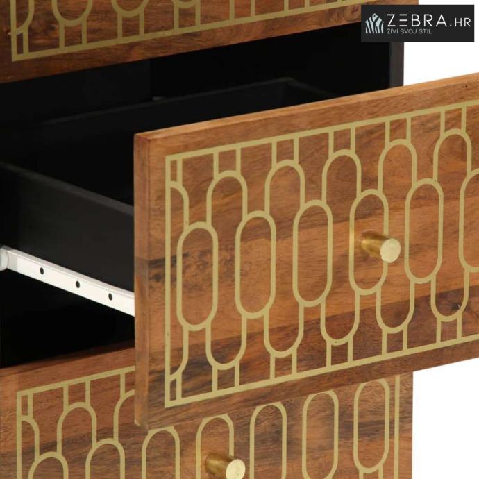 Masivno drvo manga: Masivno drvo manga snažno je tropsko tvrdo drvo koje čini čvrst namještaj. Njegovi prekrasni drveni godovi čine svaki komad namještaja malo drugačijim od sljedećeg. Napravljen od masivnog drva manga, ormarić je izdržljiv i stabilan.