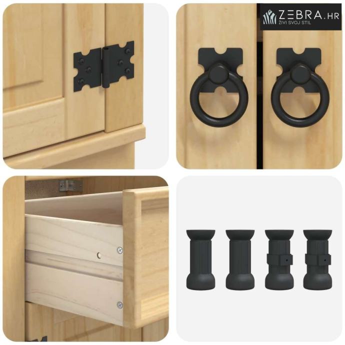 Izrađen od masivne borovine Ovaj ormar je zamišljen da traje, s čvrstim okvirom od masivne borovine koji pruža stabilnost i dozu prirodne elegancije, savršeno se uklapa u svaki interijer.