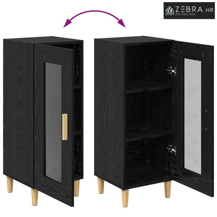 Izrađena od konstruiranog drva: Ova komoda je čvrsta i pouzdana, idealna za svakodnevnu upotrebu. Materijal je izabran zbog svoje stabilnosti i otpornosti, pa možete biti sigurni da će trajati. Staklena vrata: Poboljšajte izgled svog prostora s staklenim vratima koja nude jasan uvid u sadržaj dok dodaju dašak sofisticiranosti svakoj sobi. Učinkovito rješenje za skladištenje: Ova jedinica je genijalna za organiziranje svega od posuđa do knjiga, nudeći uredan način za pohranu bez nereda. Dizajn nogu u obliku stuba: Čvrste noge pružaju ravnotežu i stabilnost, prilagođavajući se raznim podovima i površinama. Jednostavna montaža: Potrebna je jednostavna sastava uz odvijač, a svi detalji su uključeni za lako postavljanje kod kuće. Boja: Crni hrast