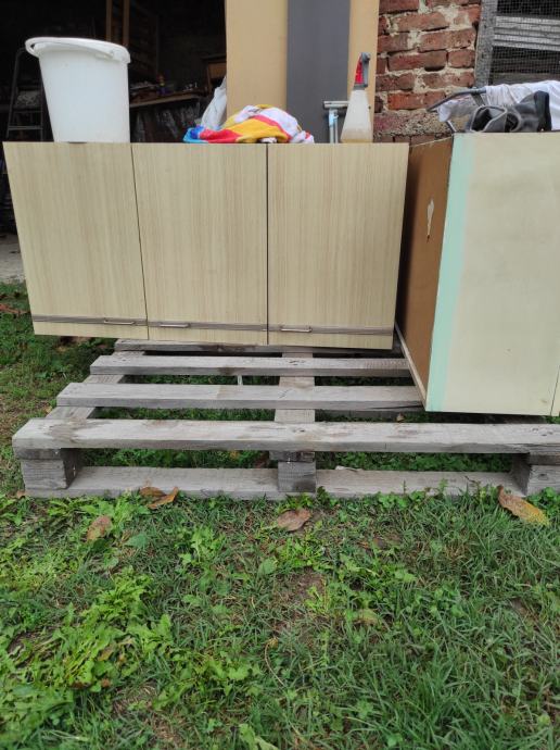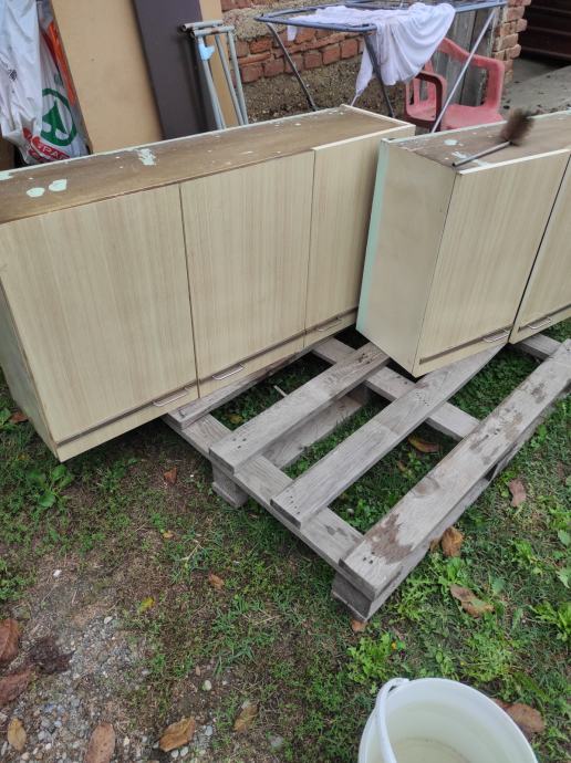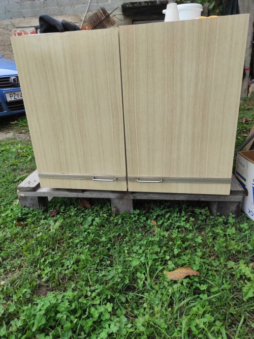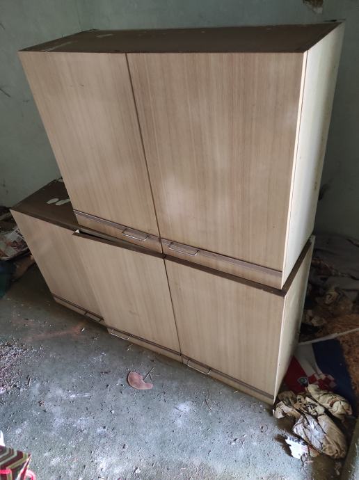 Gornji viseci kuhinjski elementi dobro ocuvai,jedan sa dvojim vratima 80 cm širine, visina je 60 cm,a jedan sa trojim vratima duzine 120 cm. Elementi imaju police, elemente sam skinuo sa zida,stoje na dvije kuke svaki element.Sivkasto- smede su boje sa zlatnim ruckama.Za sve informacije nazovite ili pošaljite upit na Viber ili Njuskalo ,a saljem Autobusom ili u dogovoru sa kupcem ,molim POGLEDAJTE SLIKE!! stari skoro pa 50 godina iz 78 g. Potrebno ih oprati od stajanja i mogu u upotrebu, ostecenja NEMA!!Vidi slike!!