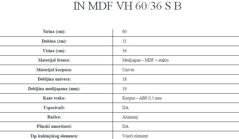 Gornji niski element - IN MDF VM 60/36 SB (kašmir + staklo) - 50€