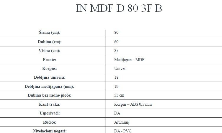 Donji element široki ladičar - IN MDF D80 3F B (kašmir) - 110€