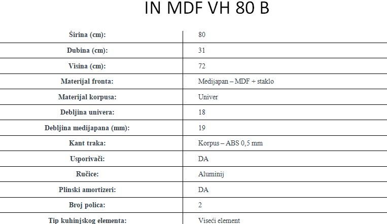 Gornji visoki element - IN MDF VH 80 B (kašmir + staklo) - 120€