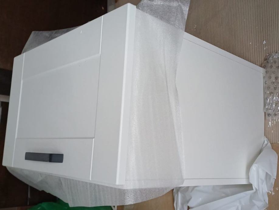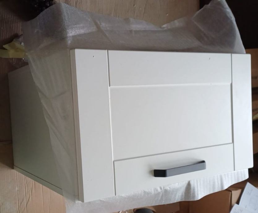 Novi kuhinjski gornji element bijele boje. Ima tihi sustav zatvaranja vrata, s metalnom crnom ručkom za otvaranje vrata prema gore, te moderan dinamičan dizajn. Kupljen novi u Zondo.hr, složen i ispao na kraju - višak za kuhinju. Pa nam ne treba. Prodaje se složen (nećemo ga rastavljati). Odličan za kuhinju, za staviti iznad štednjaka, te još možete ispod njega staviti napu. Dimenzije su kao na slici (57x60x36cm). Nalazi se smješten u centru Zagreba.