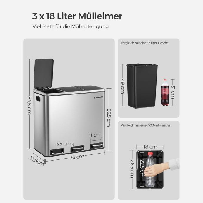Estetika i funkcionalnost susreću se u ovoj kanti za smeće s tri pedale; ne samo da privlači pažnju u vašoj kuhinji, već čini i odvajanje i odlaganje otpada dječjom igrom! Vreća za smeće je već opet razderana i kanta za smeće je iznutra sva ljepljiva. Bez panike! Unutarnje kante se lako mogu podići iz spremnika za otpad i bez problema očistiti. Srebrno-crnu kantu s 3 pretinca od 18 litara, opremljenu praktičnim pedalama i uklonjivim unutarnjim kantama. Time je odlaganje i razvrstavanje otpada dječja igra! Iako ima tvrdu vanjsku posudu, ova kanta ima i svoju mekanu stranu - zahvaljujući ugrađenom prigušivaču, poklopac se polako zatvara; hermetičko brtvljenje štiti vas od loših mirisa. Pravokutnu kantu za smeće možete jednostavno postaviti u kut ili uza zid, što zauzima manje prostora od okruglog modela. Poklopac ne udara o njega prilikom otvaranja. Za sve informacije nazovite na broj telefona 092/399-75-19