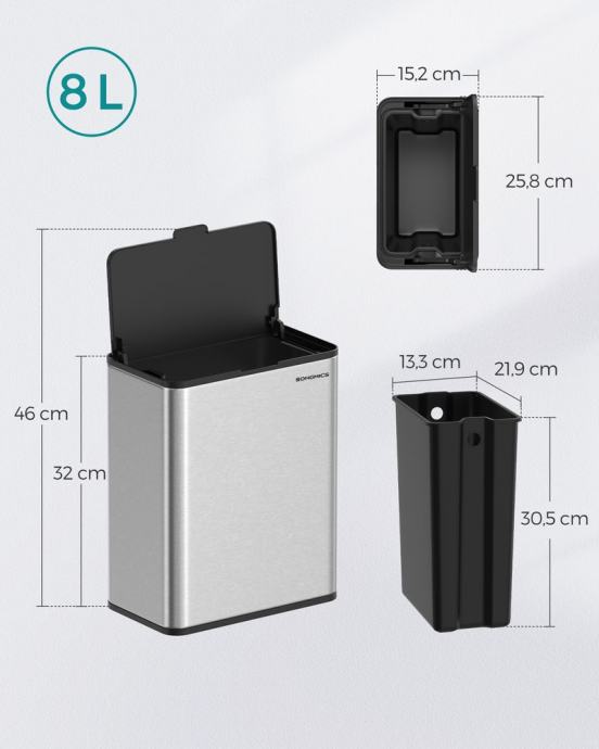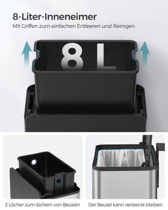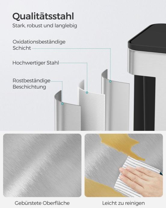 Ova kuhinjska kanta za smeće od 8 litara izrađena je od kvalitetnog čelika, otporna je na hrđu i lako se čisti. Poklopac se može čvrsto zatvoriti i zadržati neugodne mirise te osigurati da vaša kuhinja ostane svježa. Ova kanta za kompost nudi 2 načina za otvaranje poklopca - okretanje prema gore ili klizanje prema dolje - što omogućuje praktično odlaganje otpada prilikom pripreme obroka. Zahvaljujući tankom obliku, ova kanta za organski otpad prikladna je za različite prostorije kao što su kuhinje, kupaonice, toaleti i kamp-kućice, pružajući rješenje za odlaganje otpada koje štedi prostor. Kanta se može objesiti s unutarnje ili vanjske strane vrata ormarića (do 2,5 cm debljine) pomoću priložene kuke, pričvrstiti na glatke stijenke pomoću ljepljive kuke ili jednostavno postaviti na radne ploče - 3 mogućnosti! Kanta ima uklonjivu unutarnju kantu s ručkama za jednostavno čišćenje ili transport do vrtnog komposta. Zahvaljujući dvije rupe, vreće za smeće mogu se pričvrstiti bez napora i izvan vidokruga. Za sve informacije nazovite na broj telefona 092/399-75-19